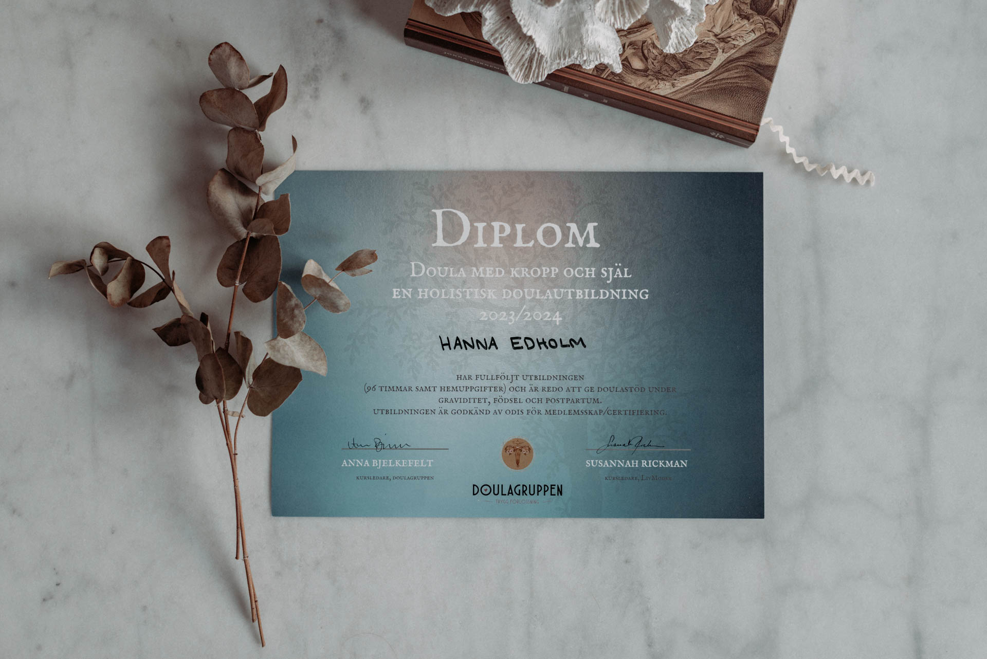 ODIS-certified doula through Doula med kropp och själ - en holistisk doulautbildning (2023) led by Anna Bjelkefelt and Susannah Rickman.