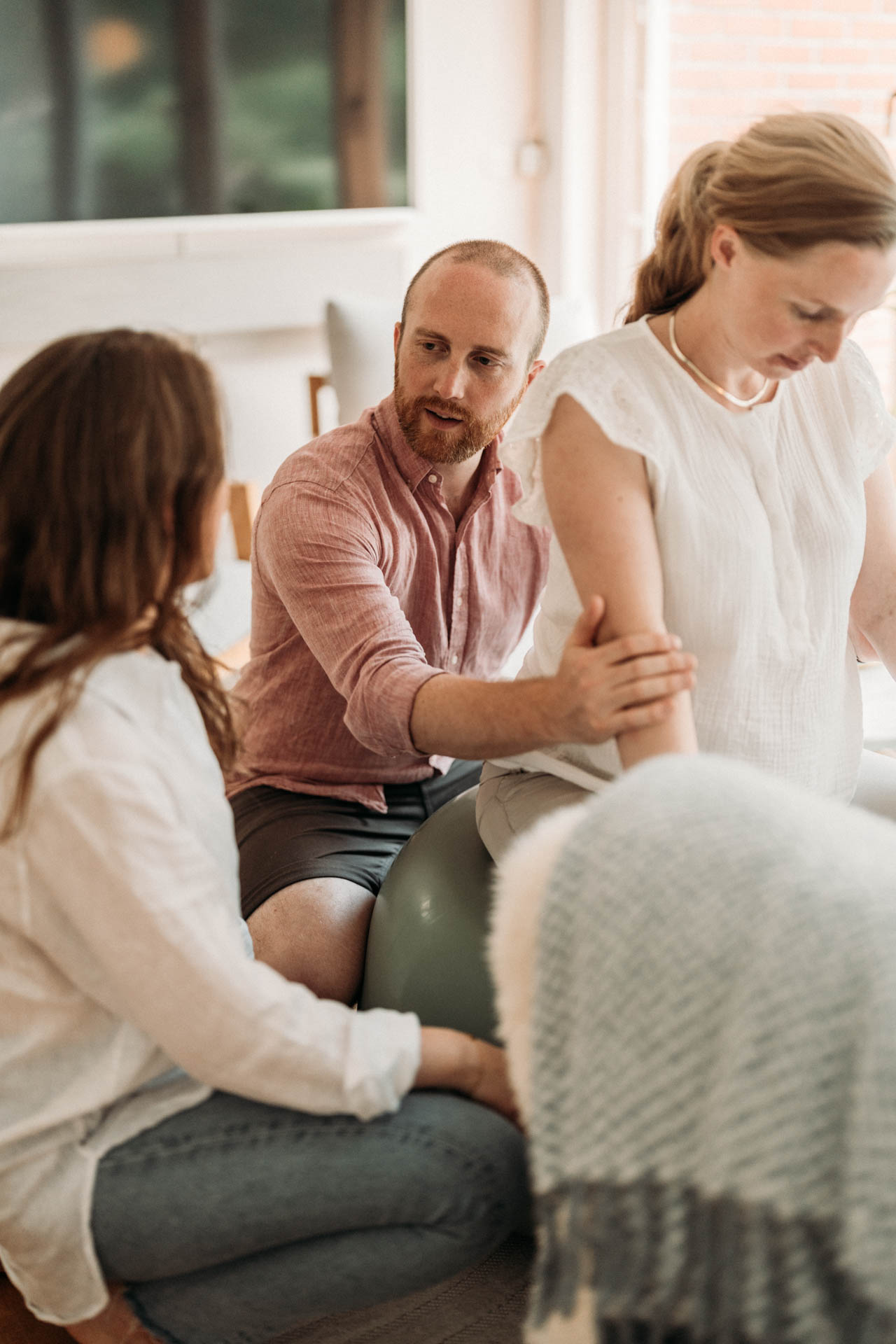 BEFORE THE BIRTH, WE HAVE TWO MEETINGS — ONE FOCUSED ON MENTAL PREPARATION AND ONE ON PRACTICAL EXERCISES.